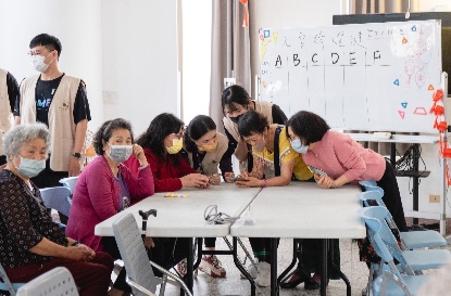 猜燈謎如同腦筋急轉彎般考驗腦力,且本次以數位共融為主題,加入長輩較為陌生的手機功能操作,不僅考驗長輩反應力,更需要團隊的合作默契。遊戲開始前,我們先透過暖身題幫助長輩熟悉流程,此時長輩們的團結心已經默默展現出來,熱烈地討論燈謎答案。果然正式開始後,有組別已經擬好策略,各組分數差距也就此拉開。雖然活動為了增加刺激感而透過比賽進行,不過一旁的志工們並沒有為了爭取名次而代替長輩操作,而是耐心引導長輩自行完成,使長輩能充分體驗遊戲樂趣與完成任務的成就感。
