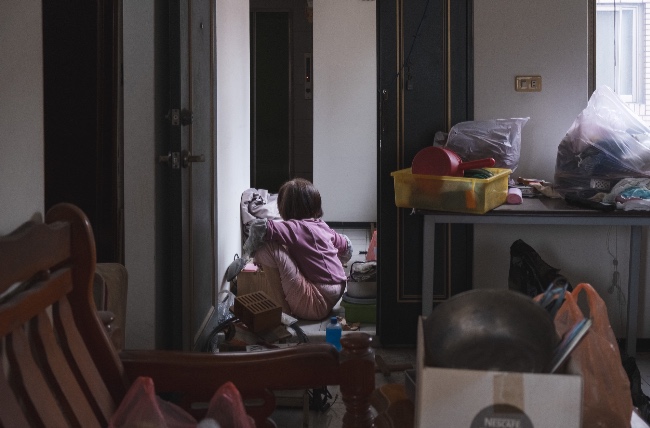 小菊奶奶因為腳部疾患長年臥床,下床只能曲著身子吃力地行動,平時雖然有居服員協助照護和簡單的家事清潔,但奶奶住了幾十年的屋子,仍堆積許多用不到及尚待整理的雜物,而居服員只能儘可能維持奶奶起居空間的整潔。
