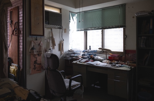 書桌上還有些文件,彷彿這個座位的人只是暫時離開