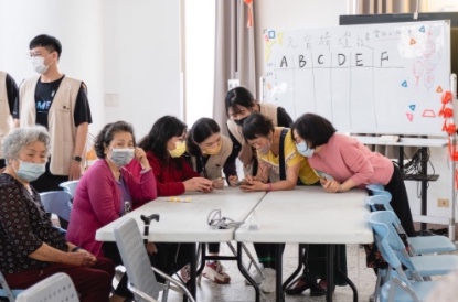 猜燈謎如同腦筋急轉彎般考驗腦力,且本次以數位共融為主題,加入長輩較為陌生的手機功能操作,不僅考驗長輩反應力,更需要團隊的合作默契。遊戲開始前,我們先透過暖身題幫助長輩熟悉流程,此時長輩們的團結心已經默默展現出來,熱烈地討論燈謎答案。果然正式開始後,有組別已經擬好策略,各組分數差距也就此拉開。雖然活動為了增加刺激感而透過比賽進行,不過一旁的志工們並沒有為了爭取名次而代替長輩操作,而是耐心引導長輩自行完成,使長輩能充分體驗遊戲樂趣與完成任務的成就感。